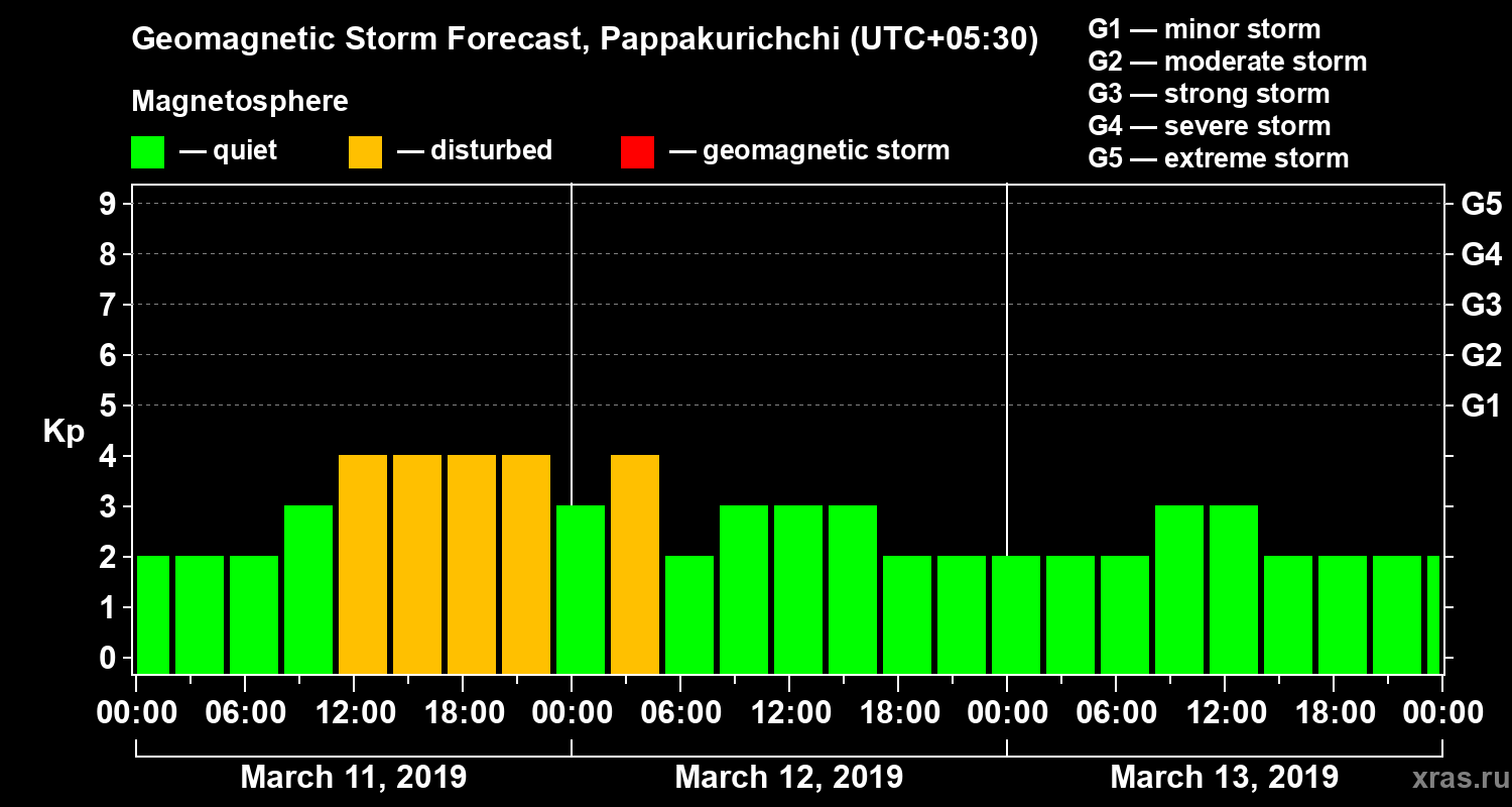 Geomagnetic storm forecast in Pappakurichchi for Mar 11, 2019
