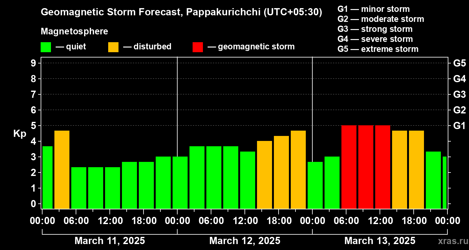 Geomagnetic storm forecast in Pappakurichchi for Mar 11, 2025