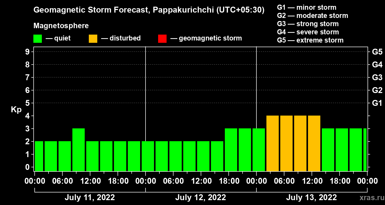 Geomagnetic storm forecast in Pappakurichchi for Jul 11, 2022