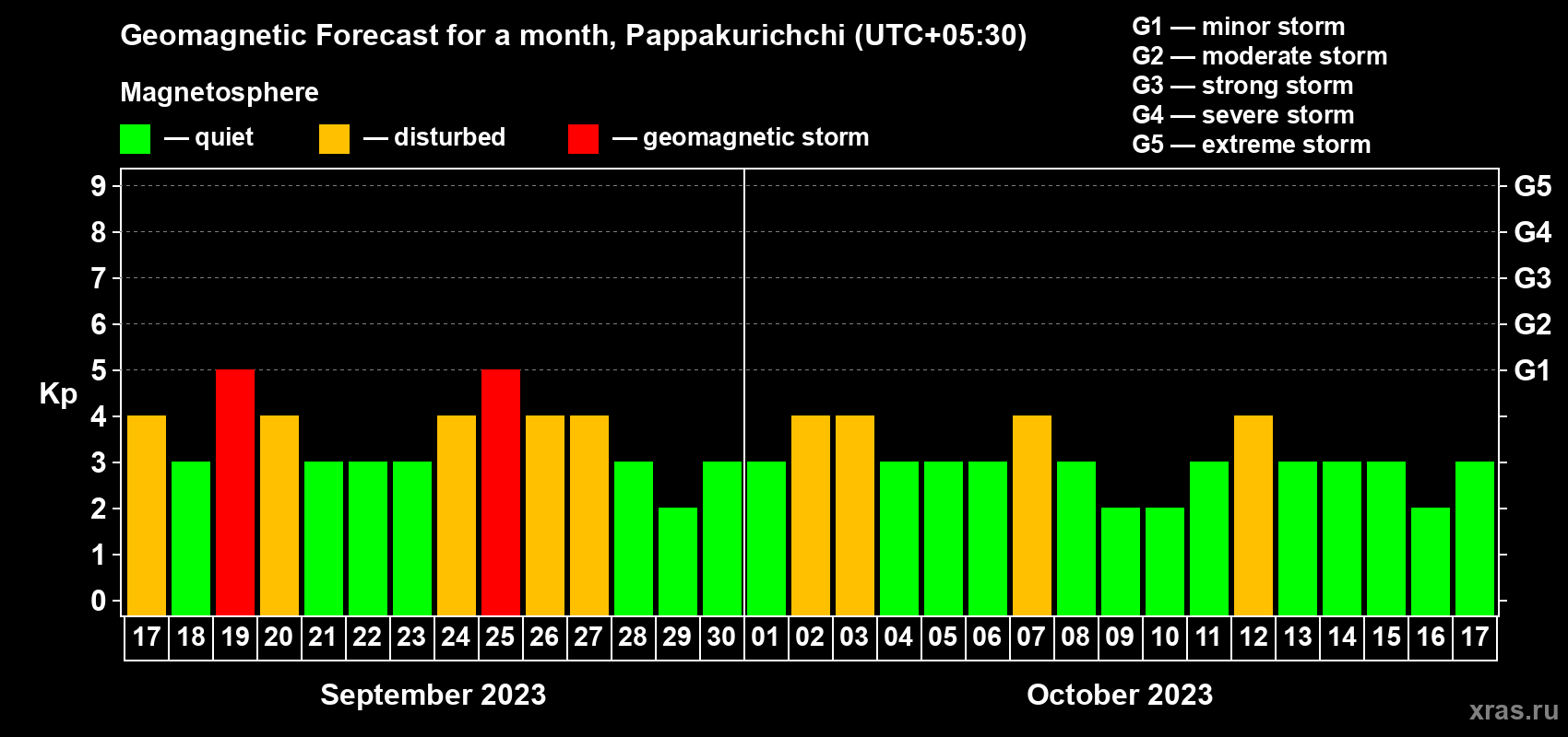 Geomagnetic storm forecast in Pappakurichchi for Sep 17, 2023