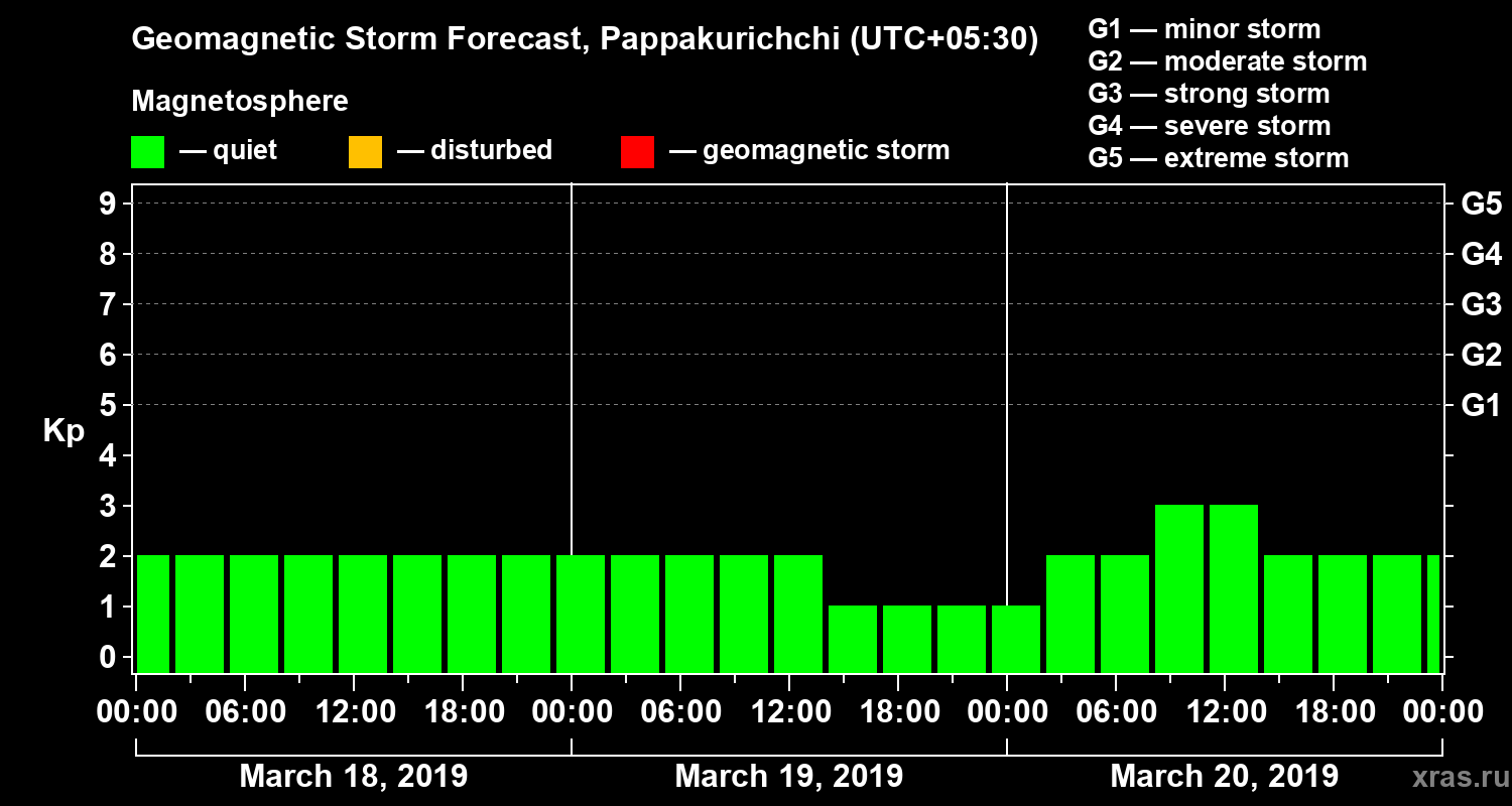 Geomagnetic storm forecast in Pappakurichchi for Mar 18, 2019