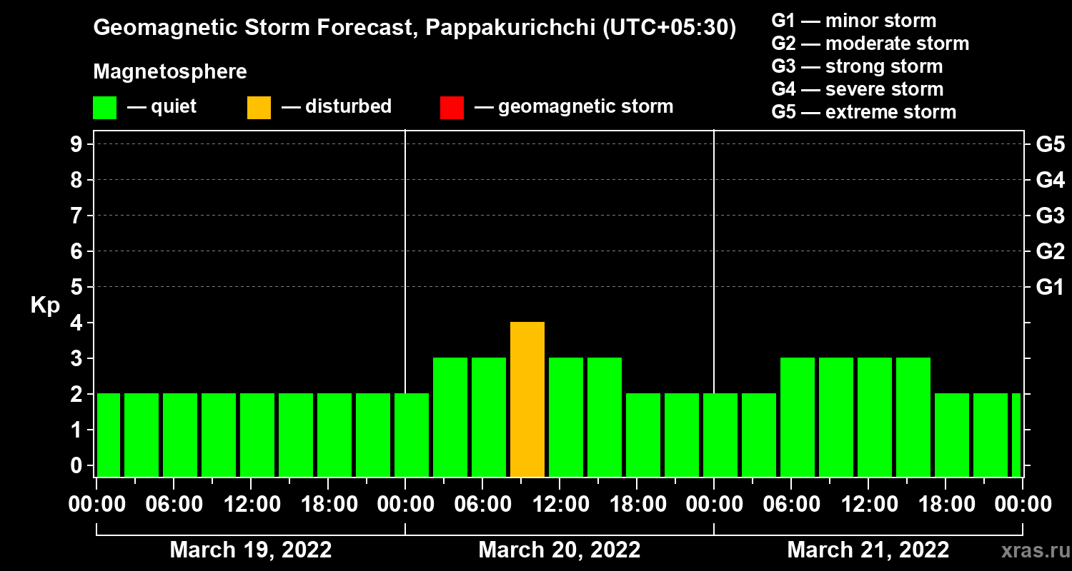 Geomagnetic storm forecast in Pappakurichchi for Mar 19, 2022