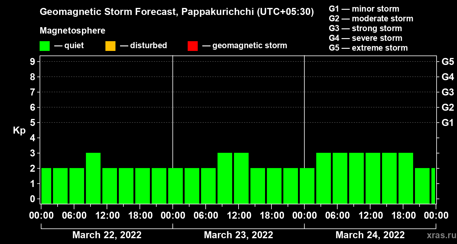 Geomagnetic storm forecast in Pappakurichchi for Mar 22, 2022