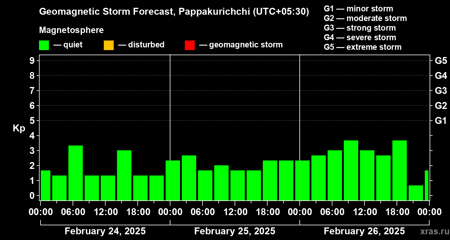 Geomagnetic storm forecast in Pappakurichchi for Feb 24, 2025