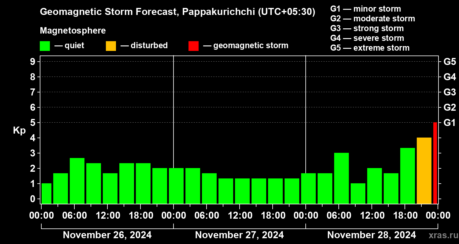 Geomagnetic storm forecast in Pappakurichchi for Nov 26, 2024
