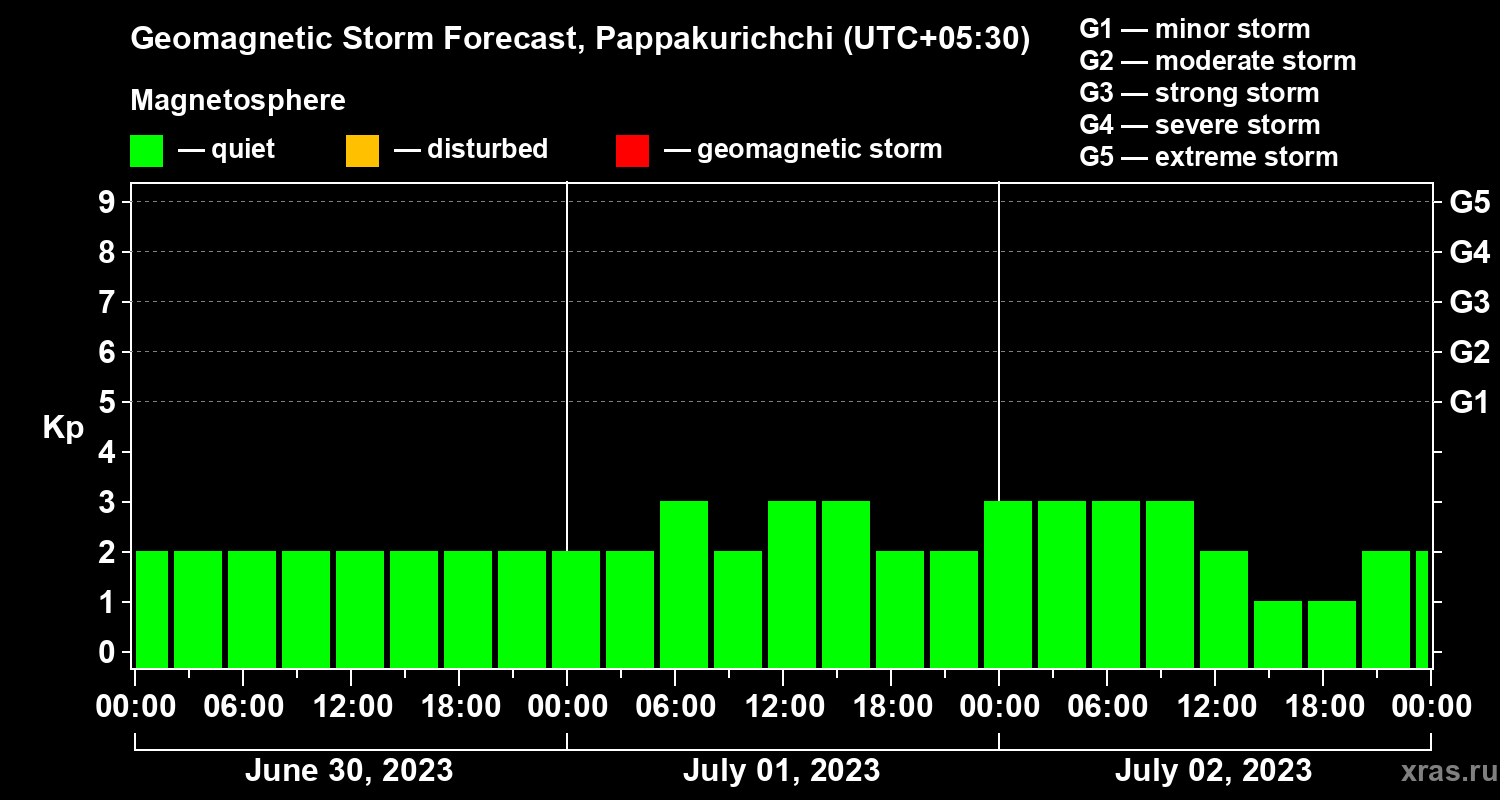 Geomagnetic storm forecast in Pappakurichchi for Jun 30, 2023