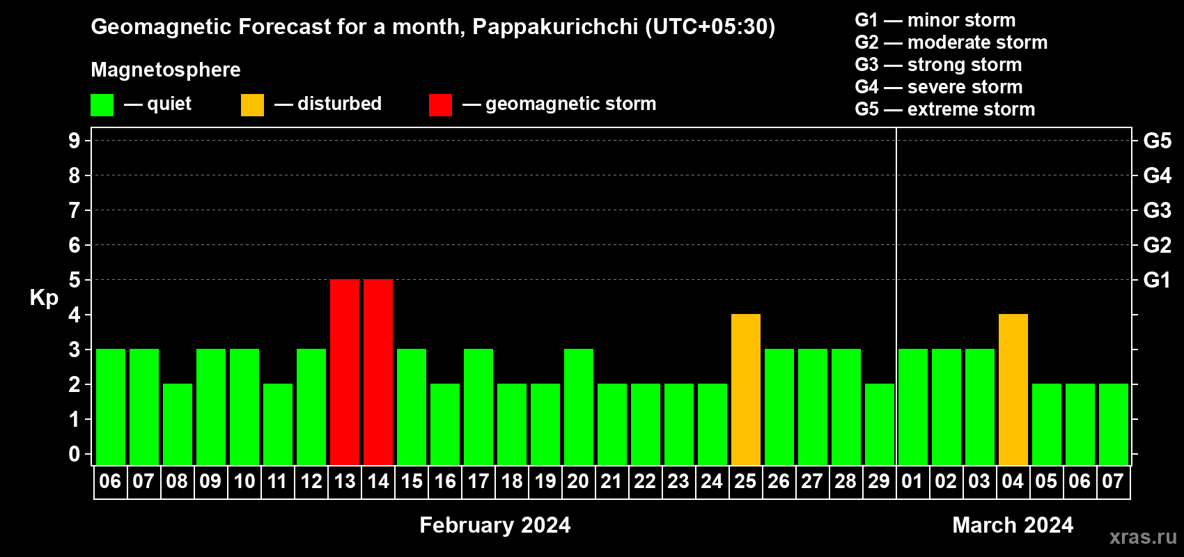 Geomagnetic storm forecast in Pappakurichchi for Feb 06, 2024