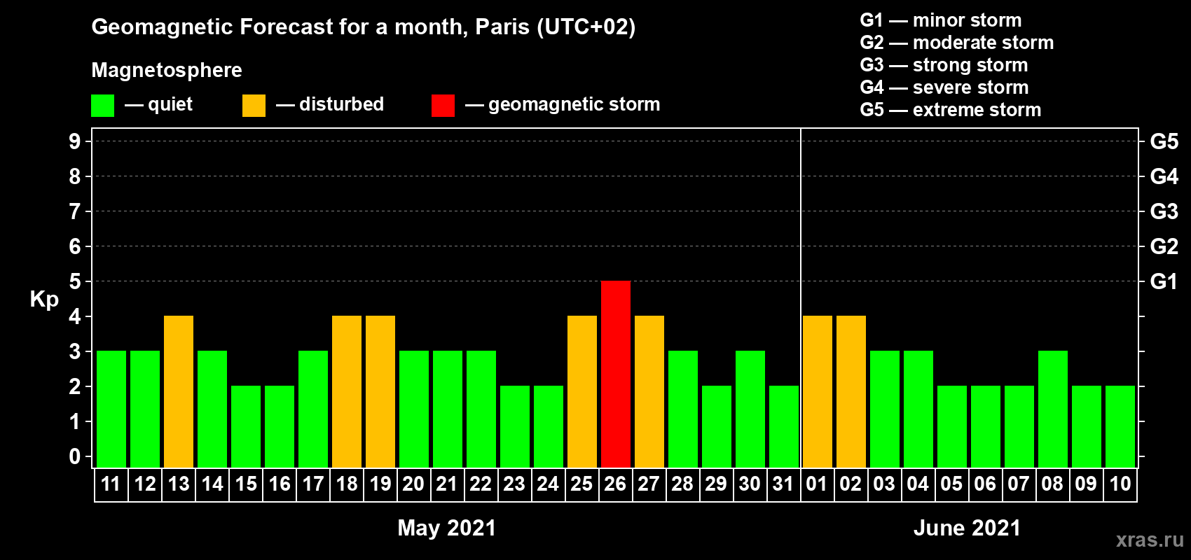 Geomagnetic activity forecast in Paris — May 11, 2021