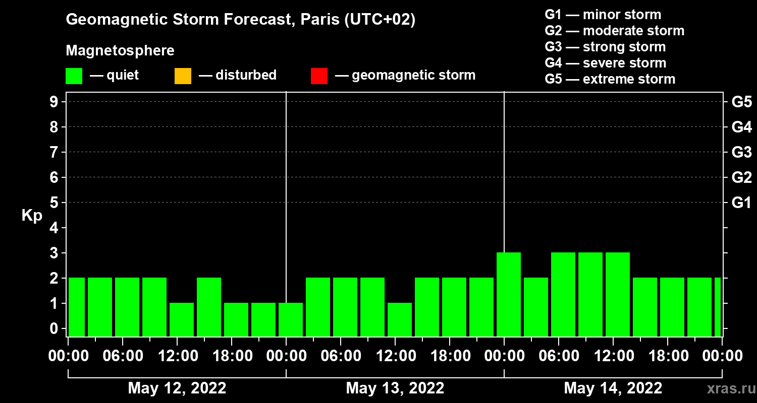 Geomagnetic activity forecast in Paris — May 12, 2022