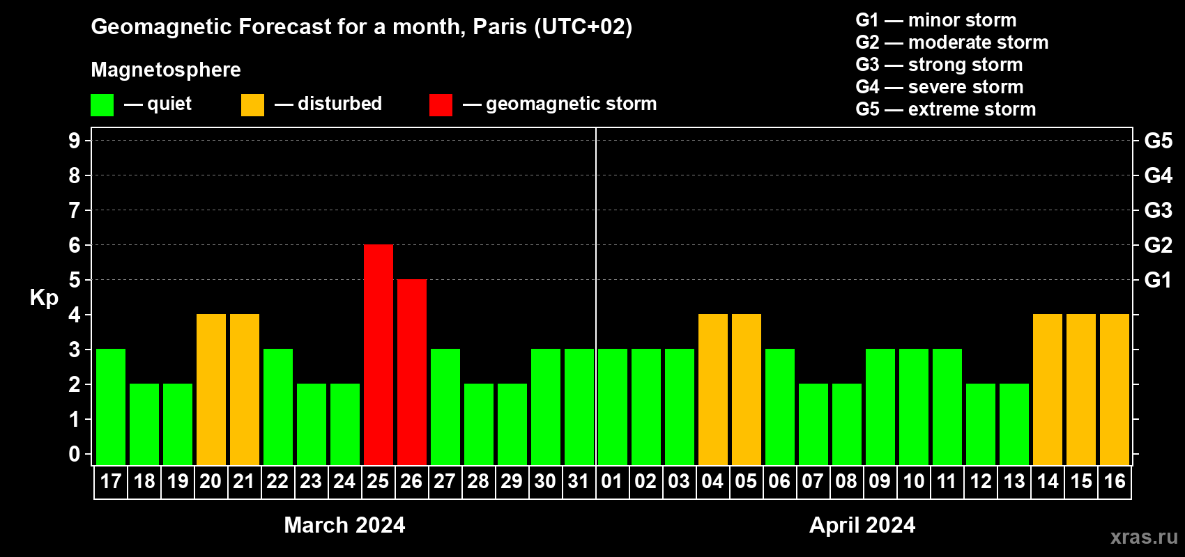 Geomagnetic activity forecast in Paris — Mar 17, 2024