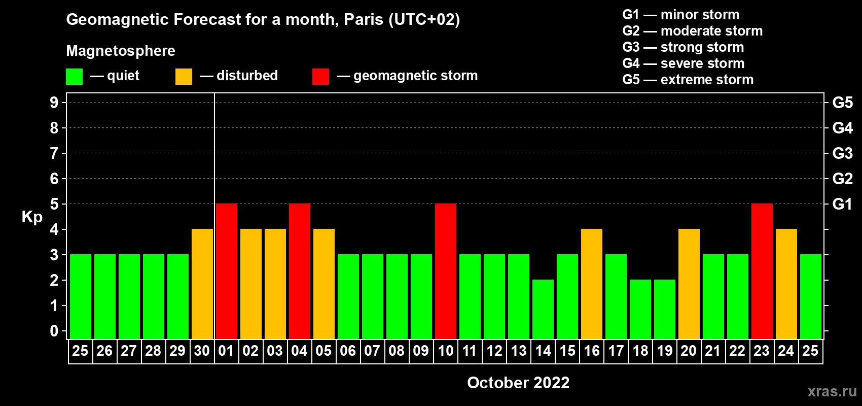 Geomagnetic activity forecast in Paris — Sep 25, 2022