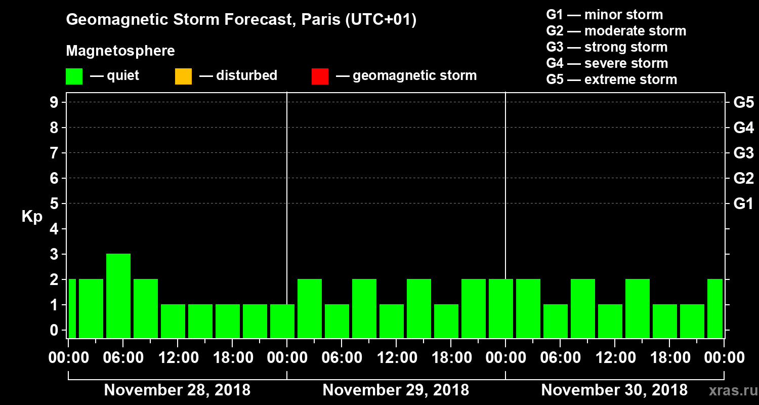 Geomagnetic storm forecast in Paris for Nov 28, 2018