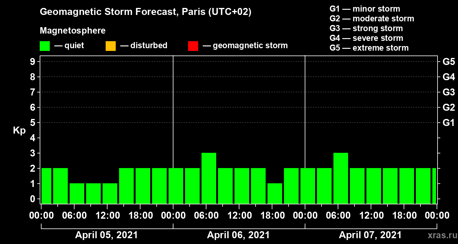 Geomagnetic storm forecast in Paris for Apr 05, 2021