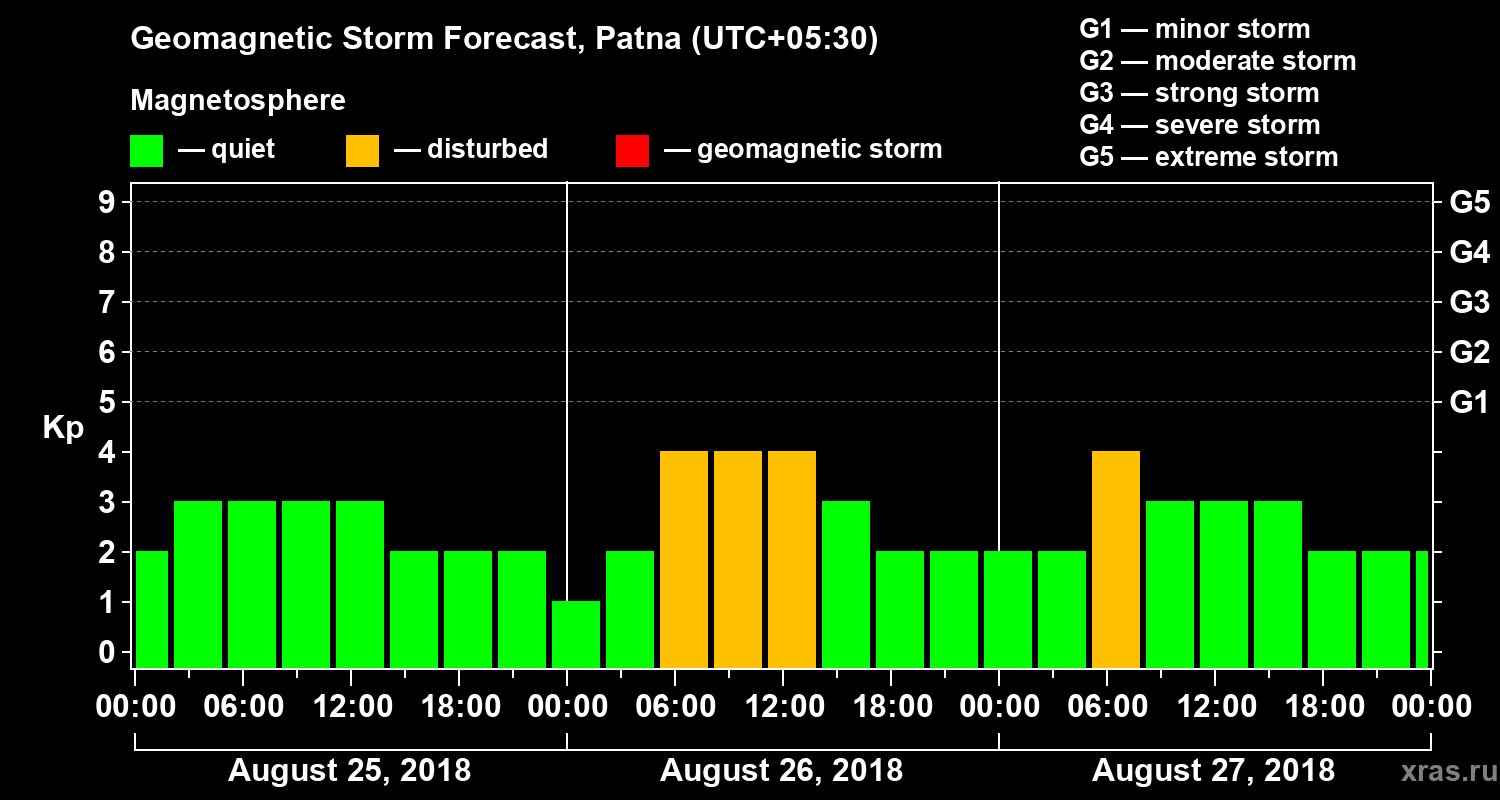 Geomagnetic storm forecast in Patna for Aug 25, 2018
