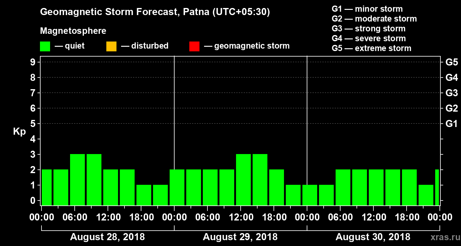 Geomagnetic storm forecast in Patna for Aug 28, 2018