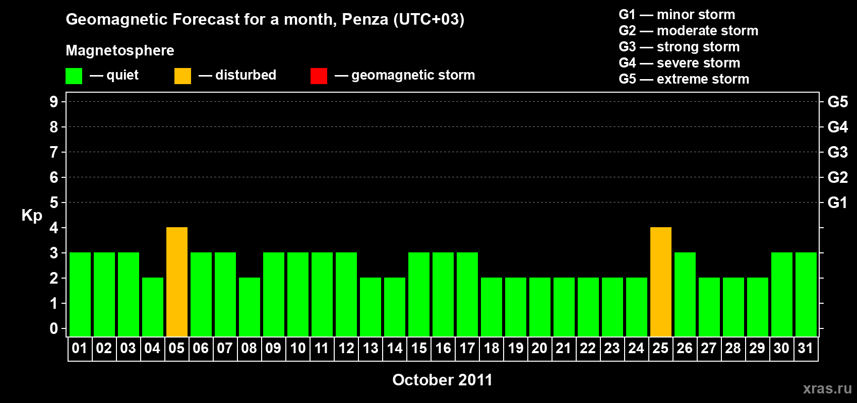 Geomagnetic storm forecast in Penza for Oct 01, 2011