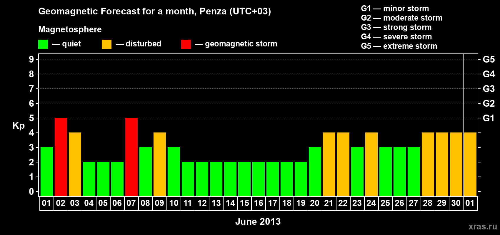 Geomagnetic storm forecast in Penza for Jun 01, 2013