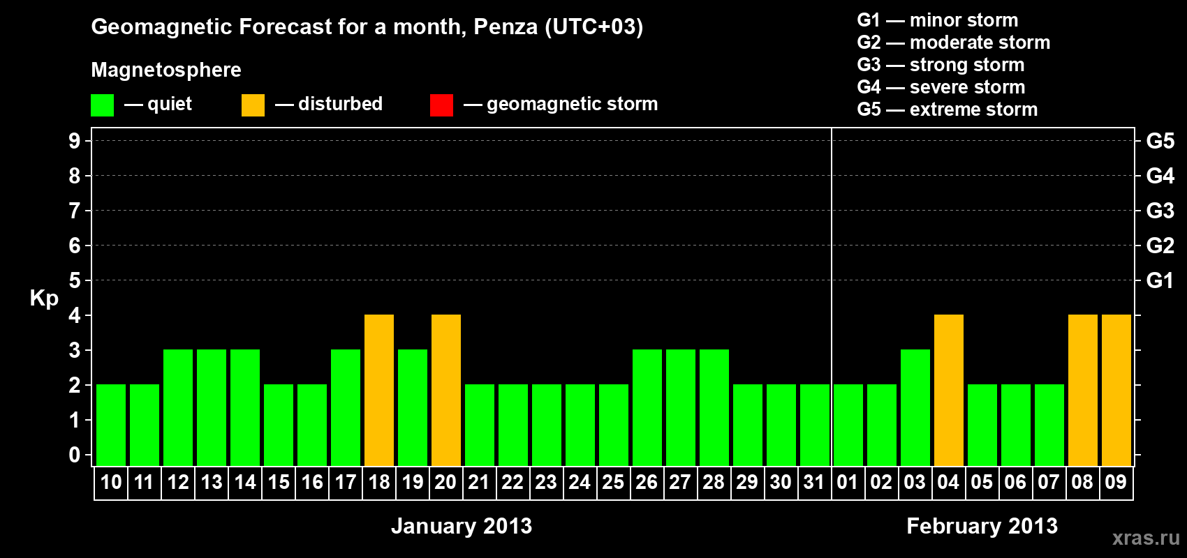 Geomagnetic storm forecast in Penza for Jan 10, 2013