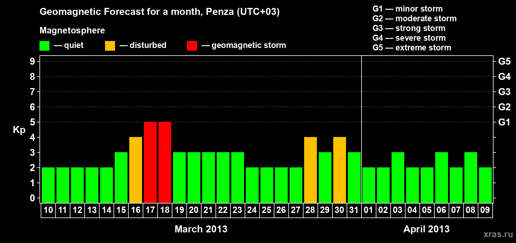 Geomagnetic storm forecast in Penza for Mar 10, 2013