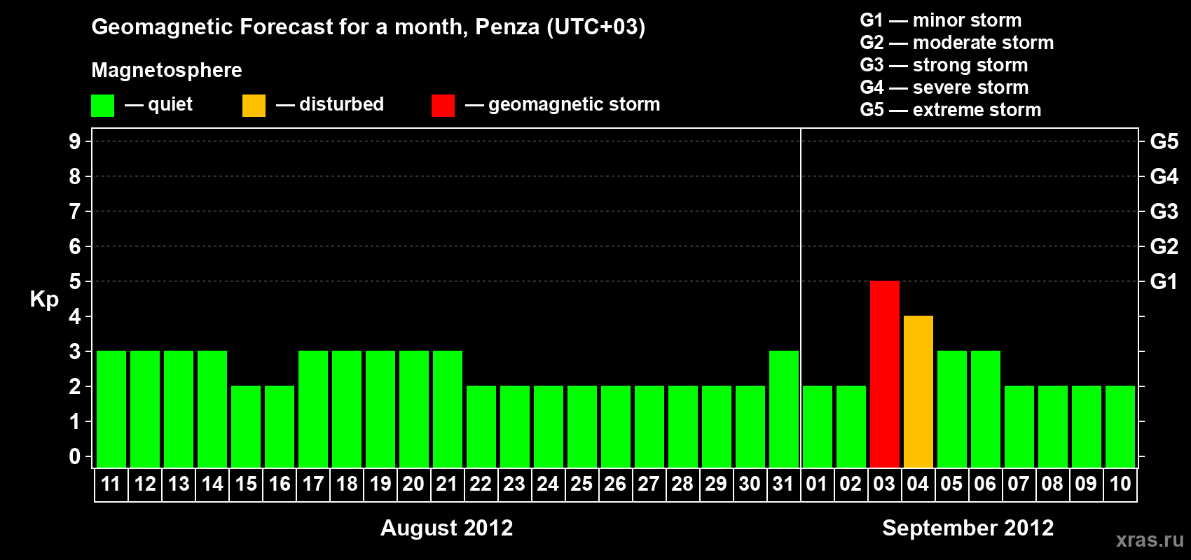 Geomagnetic storm forecast in Penza for Aug 11, 2012