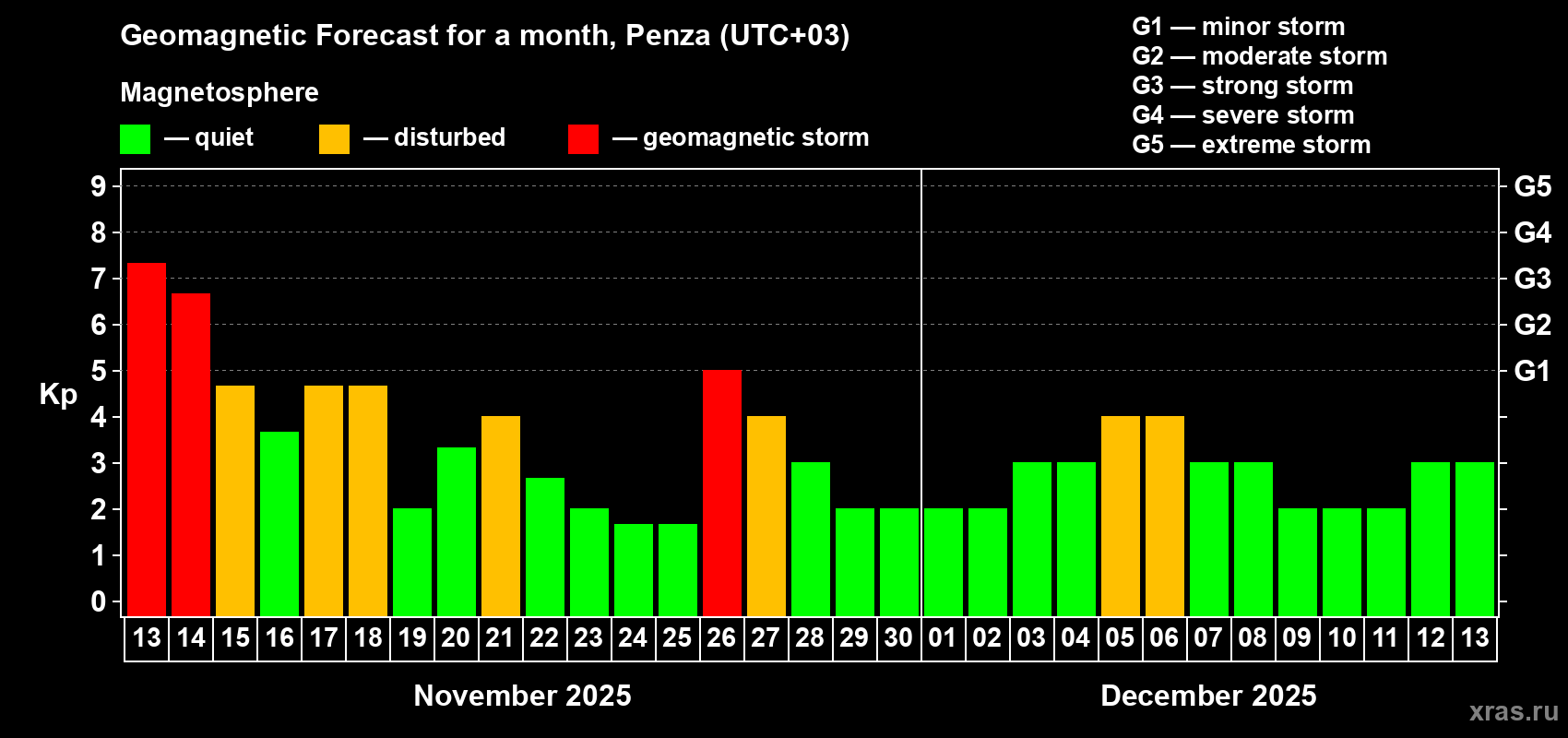 Geomagnetic storm forecast in Penza for Nov 13, 2025