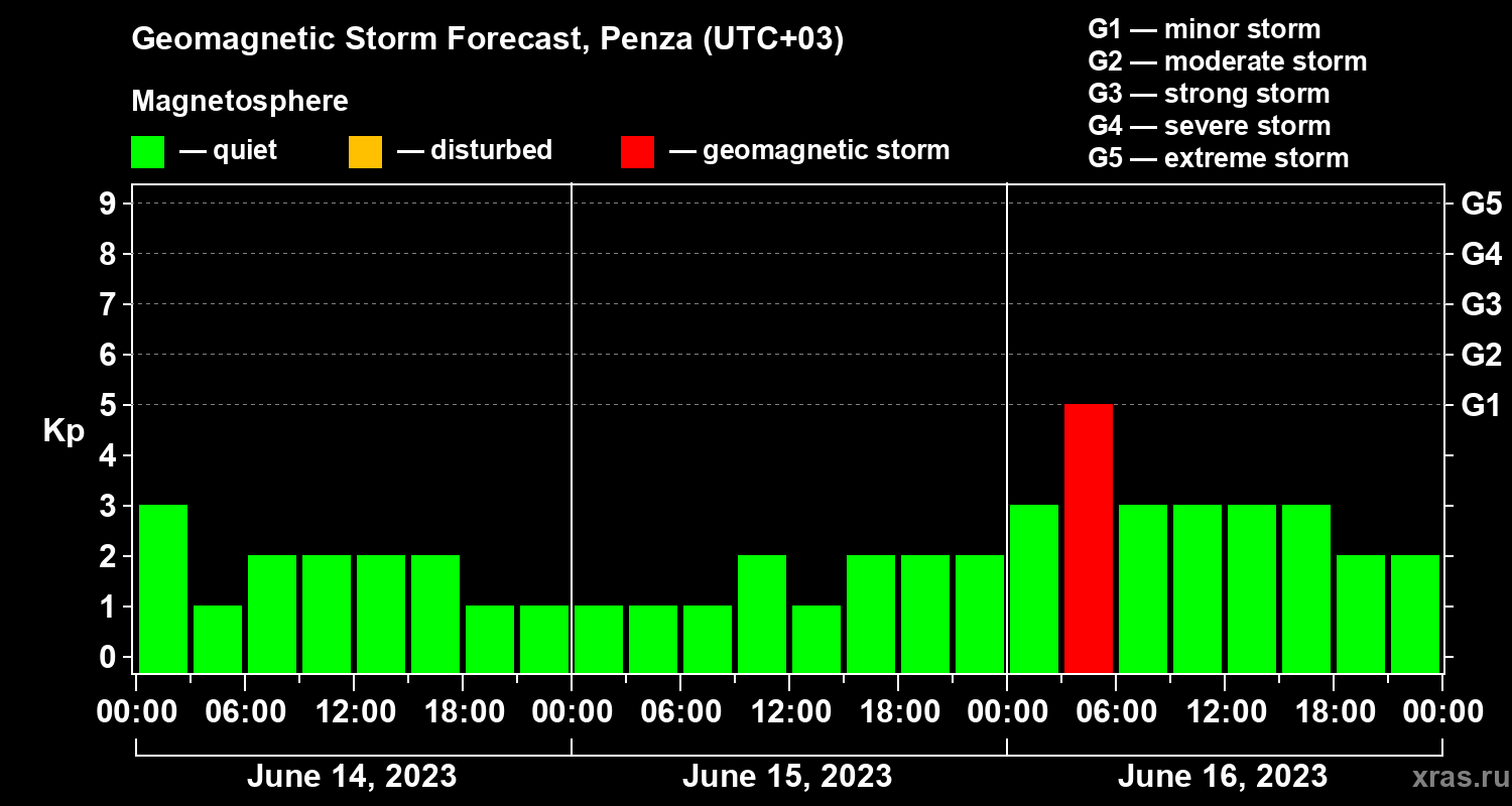 Geomagnetic storm forecast in Penza for Jun 14, 2023