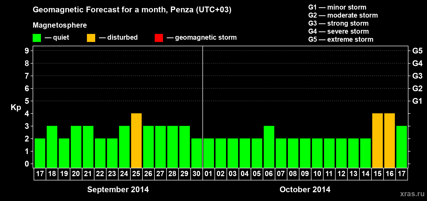 Geomagnetic storm forecast in Penza for Sep 17, 2014