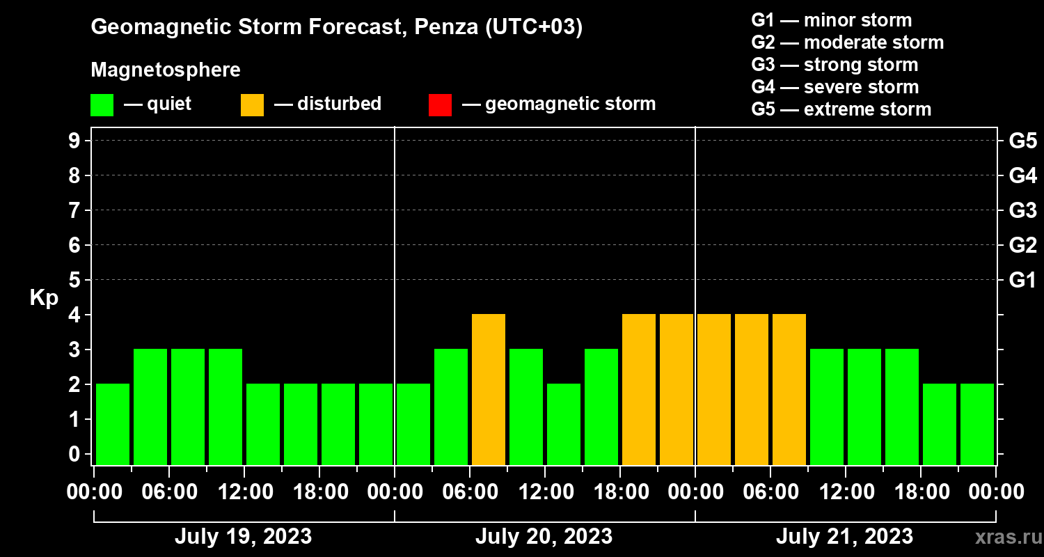 Geomagnetic activity forecast in Penza — Jul 19, 2023