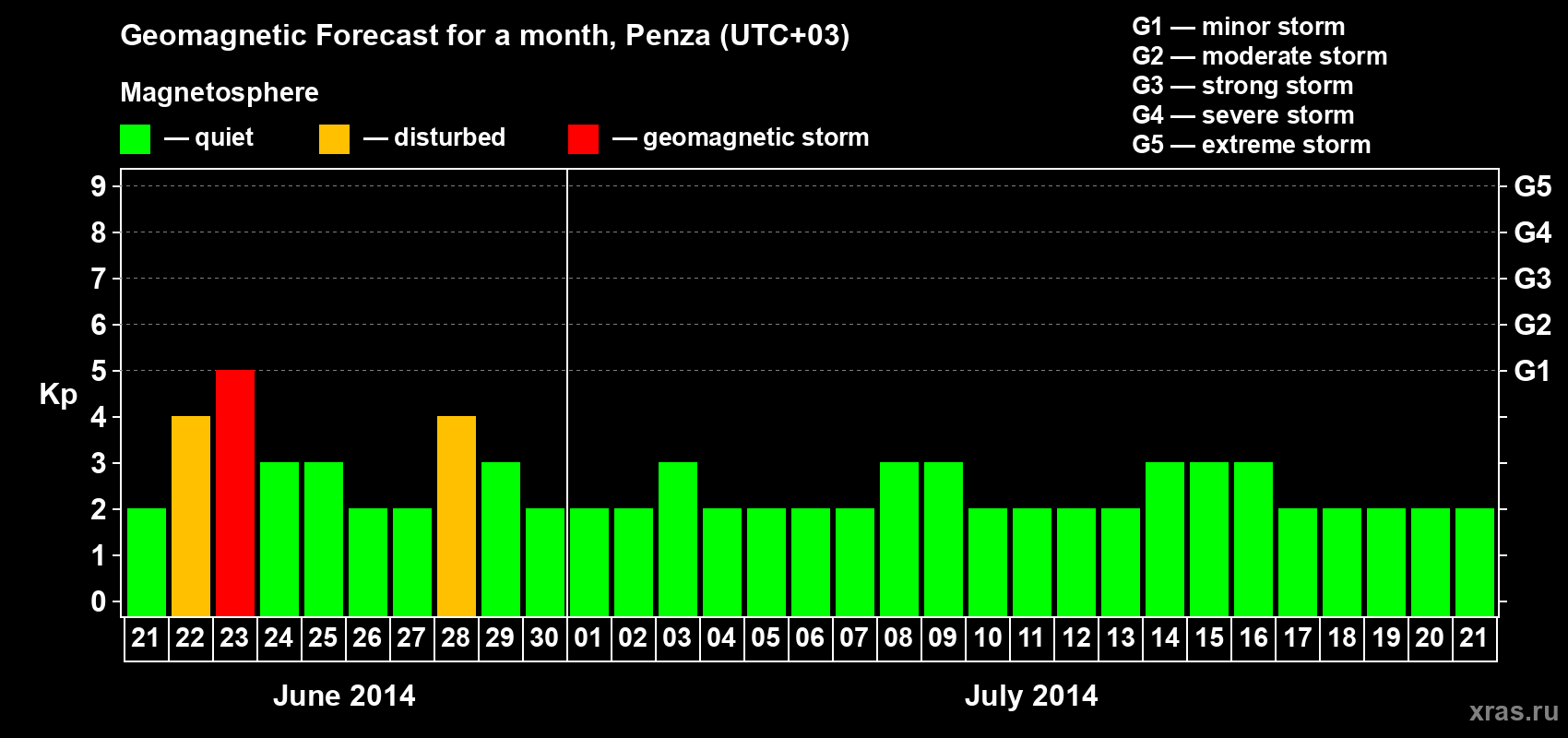 Geomagnetic storm forecast in Penza for Jun 21, 2014