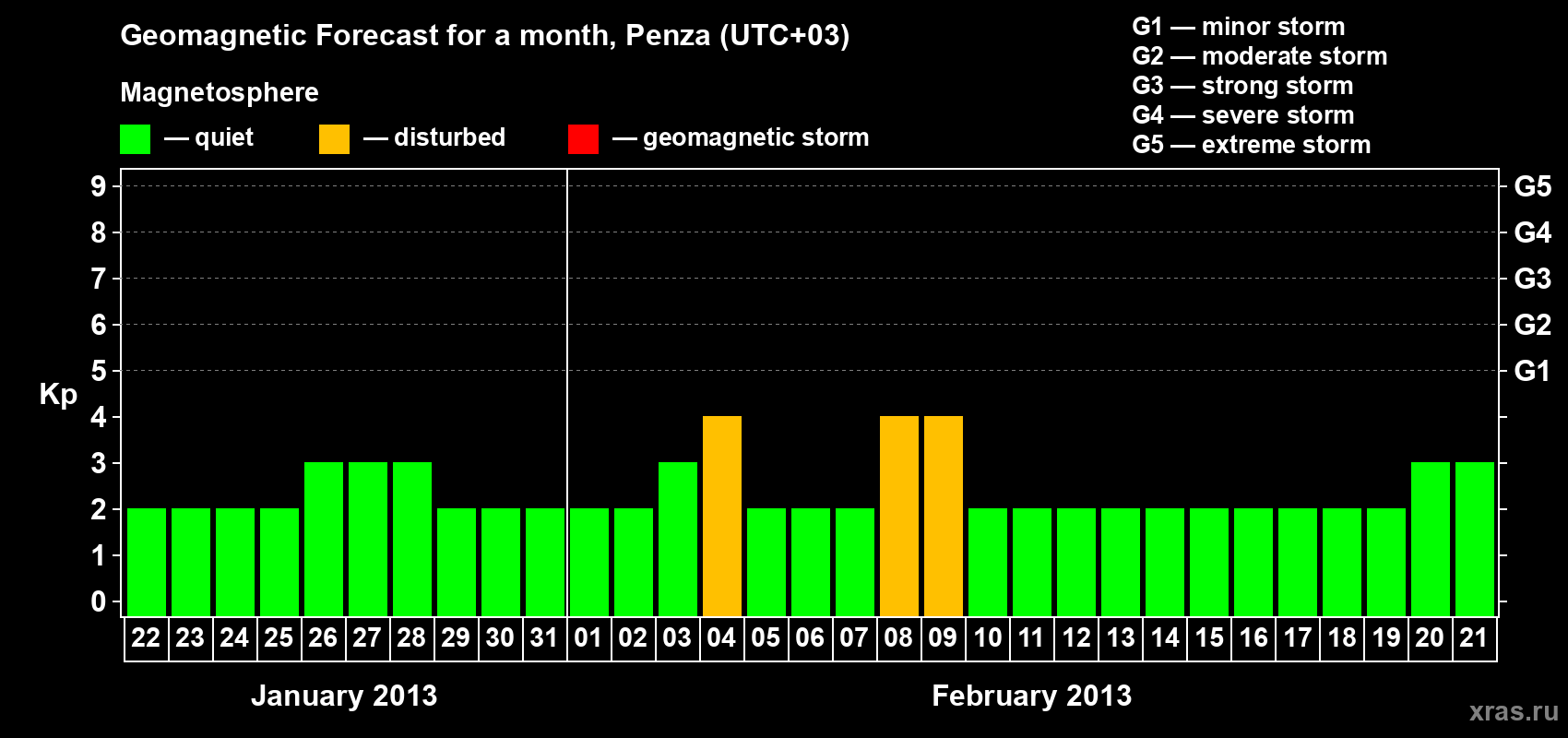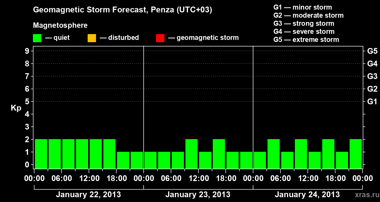 Geomagnetic storm forecast in Penza for Jan 22, 2013