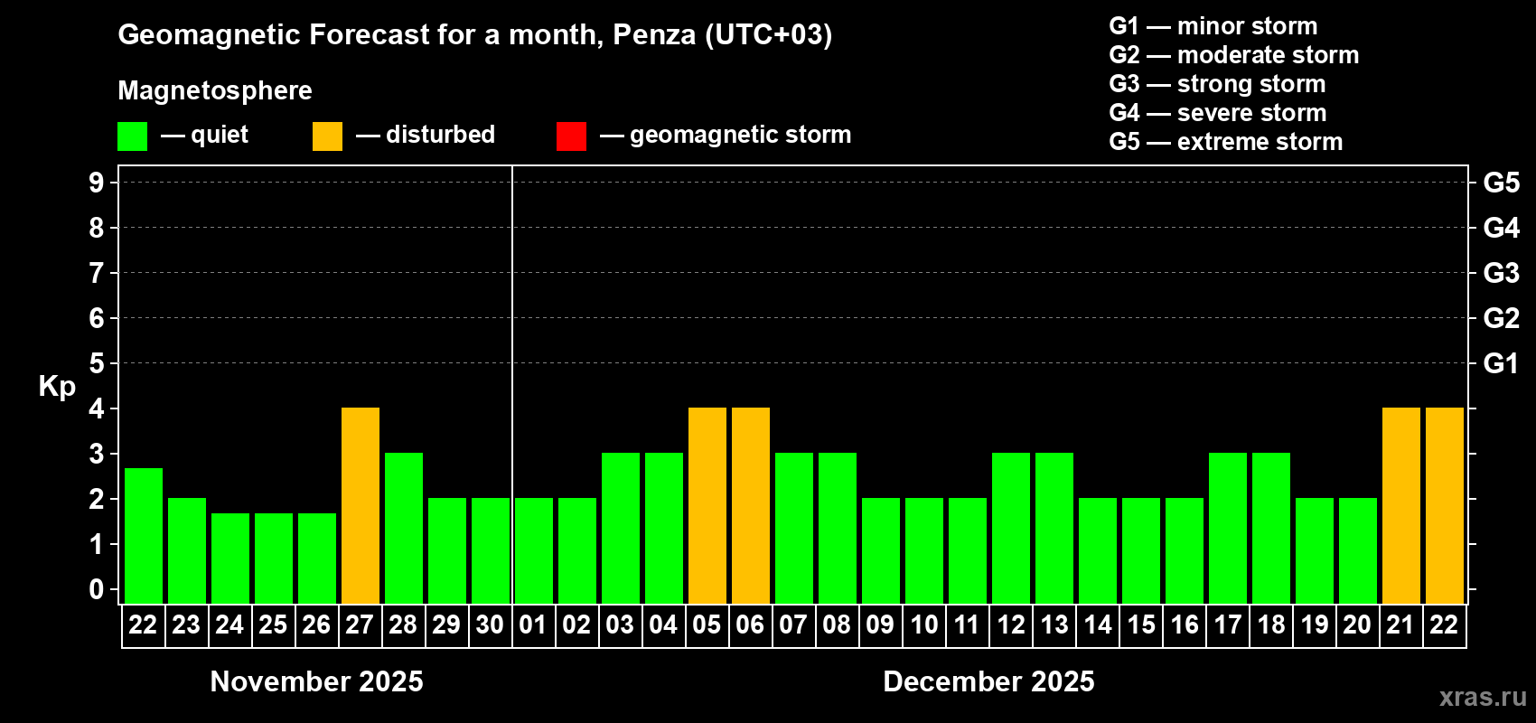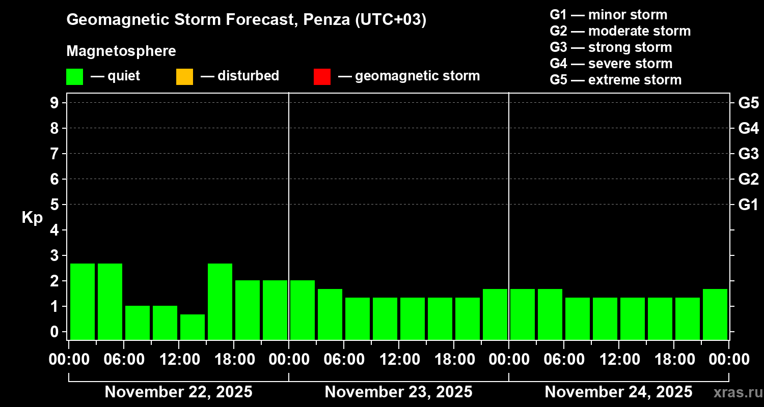 Geomagnetic storm forecast in Penza for Nov 22, 2025