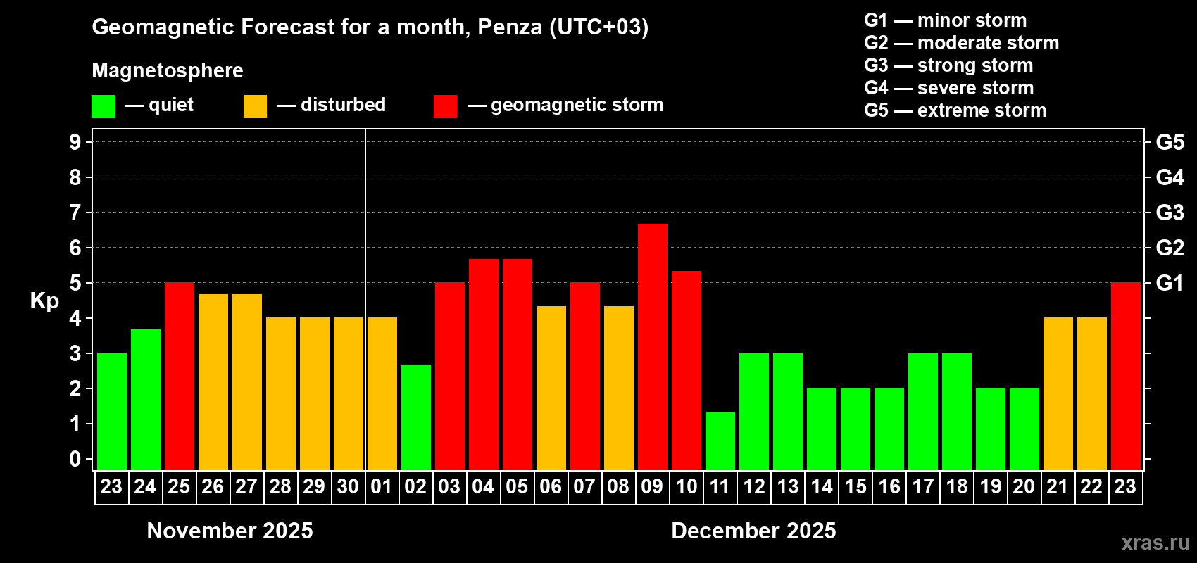 Geomagnetic storm forecast in Penza for Nov 23, 2025