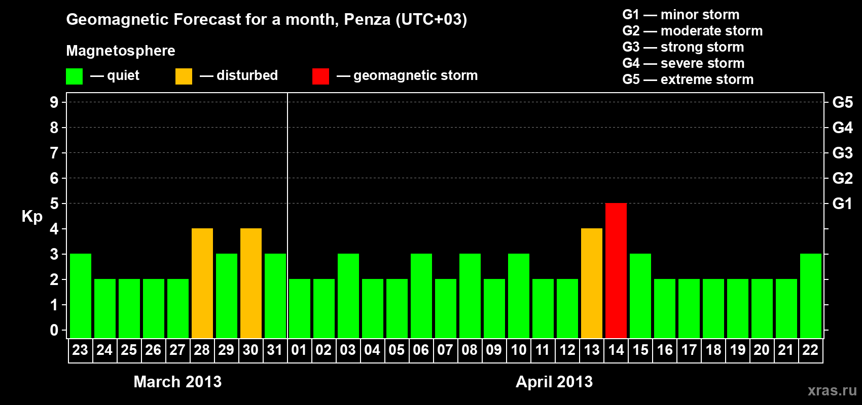Geomagnetic storm forecast in Penza for Mar 23, 2013