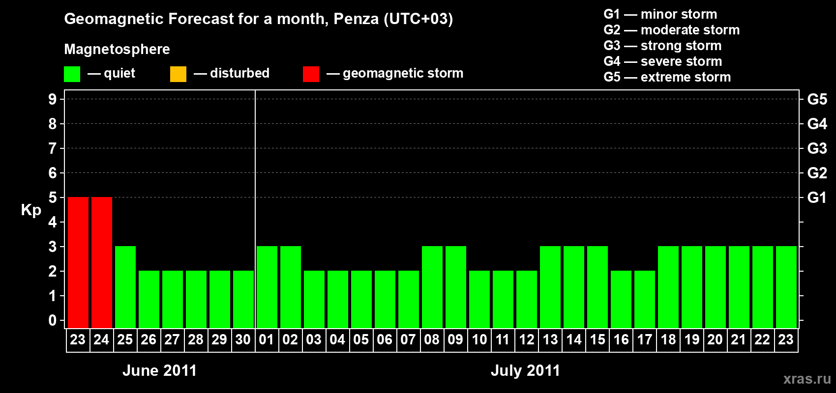 Geomagnetic storm forecast in Penza for Jun 23, 2011