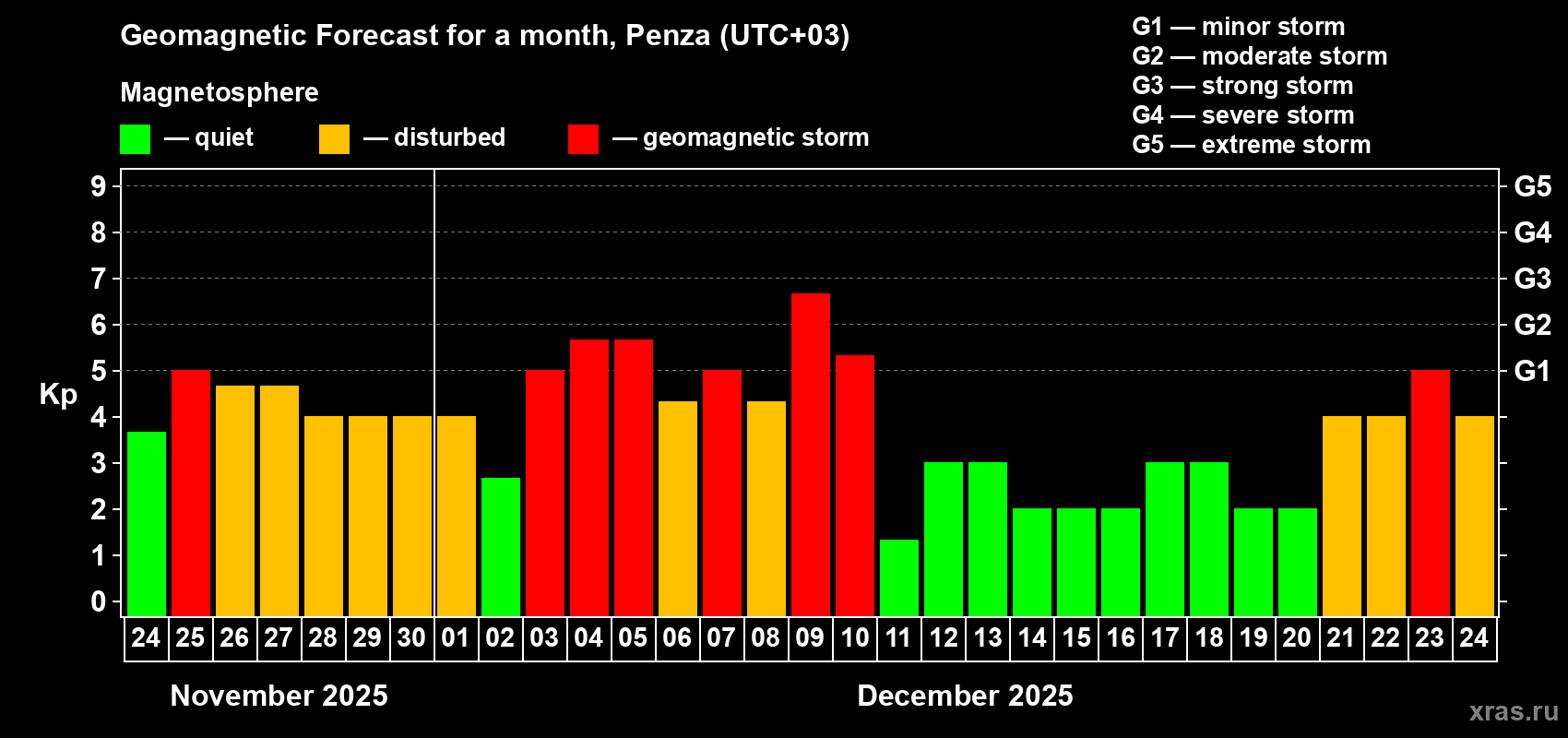 Geomagnetic storm forecast in Penza for Nov 24, 2025