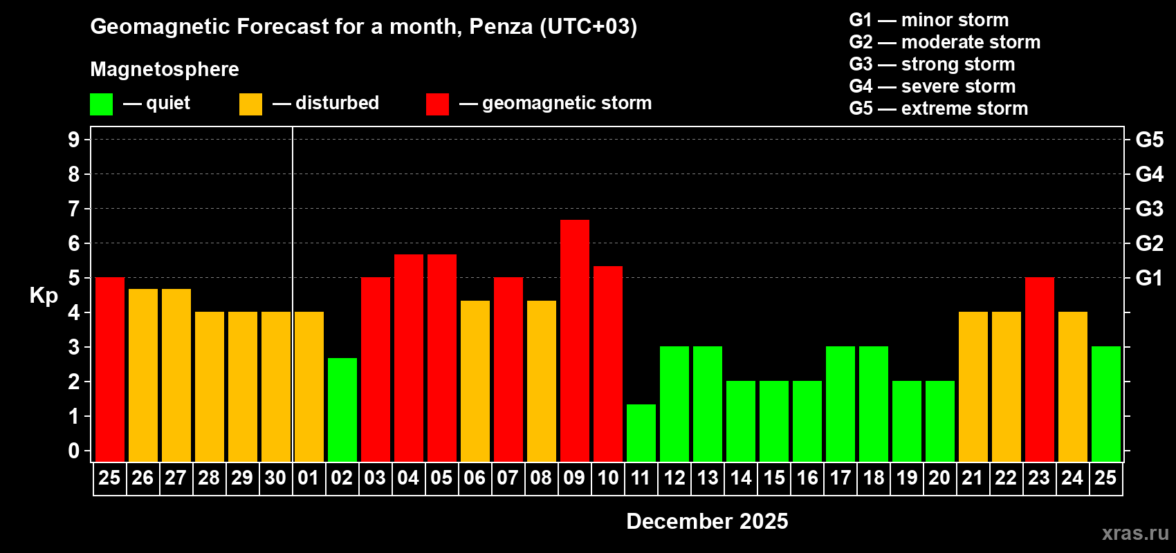 Geomagnetic storm forecast in Penza for Nov 25, 2025