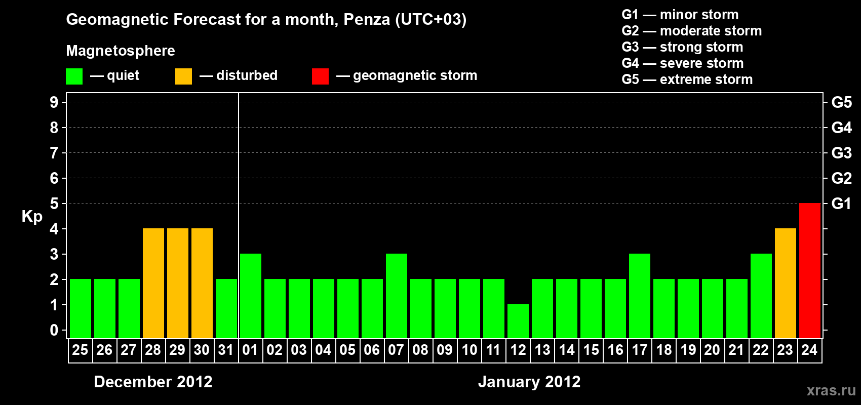 Geomagnetic storm forecast in Penza for Dec 25, 2011