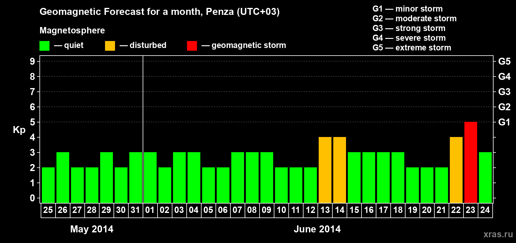 Geomagnetic storm forecast in Penza for May 25, 2014