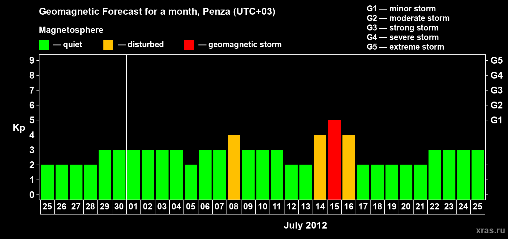 Geomagnetic storm forecast in Penza for Jun 25, 2012