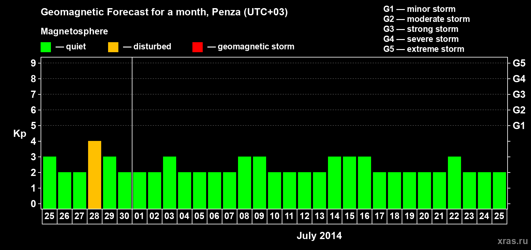 Geomagnetic storm forecast in Penza for Jun 25, 2014