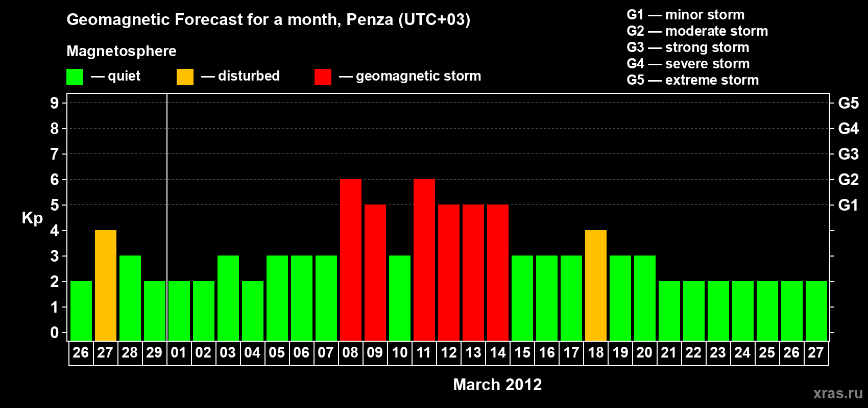 Geomagnetic storm forecast in Penza for Feb 26, 2012