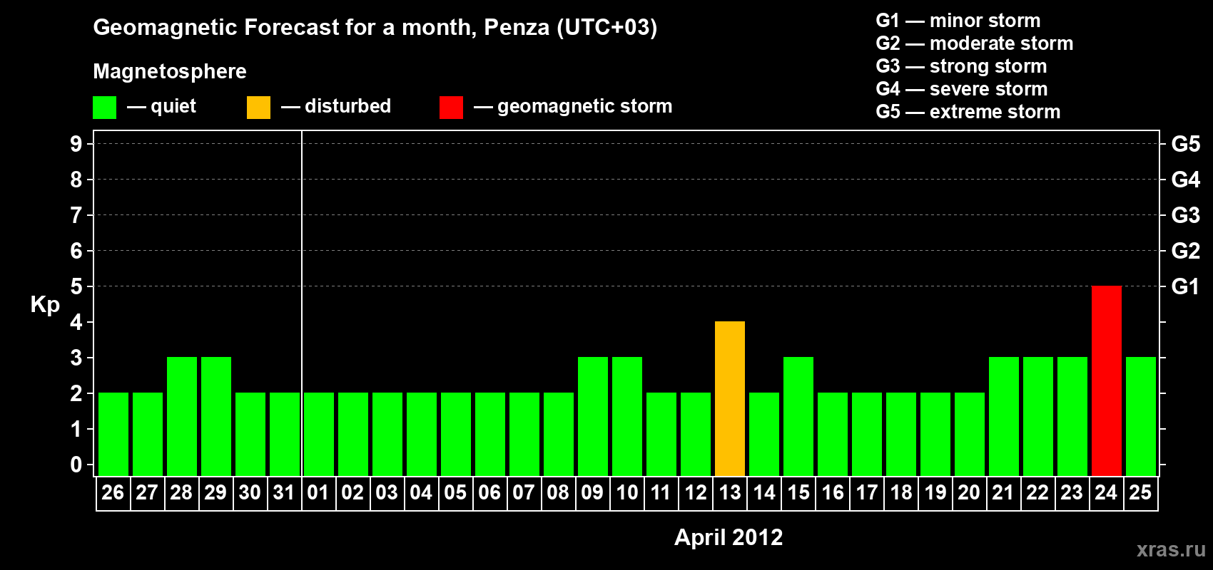 Geomagnetic storm forecast in Penza for Mar 26, 2012