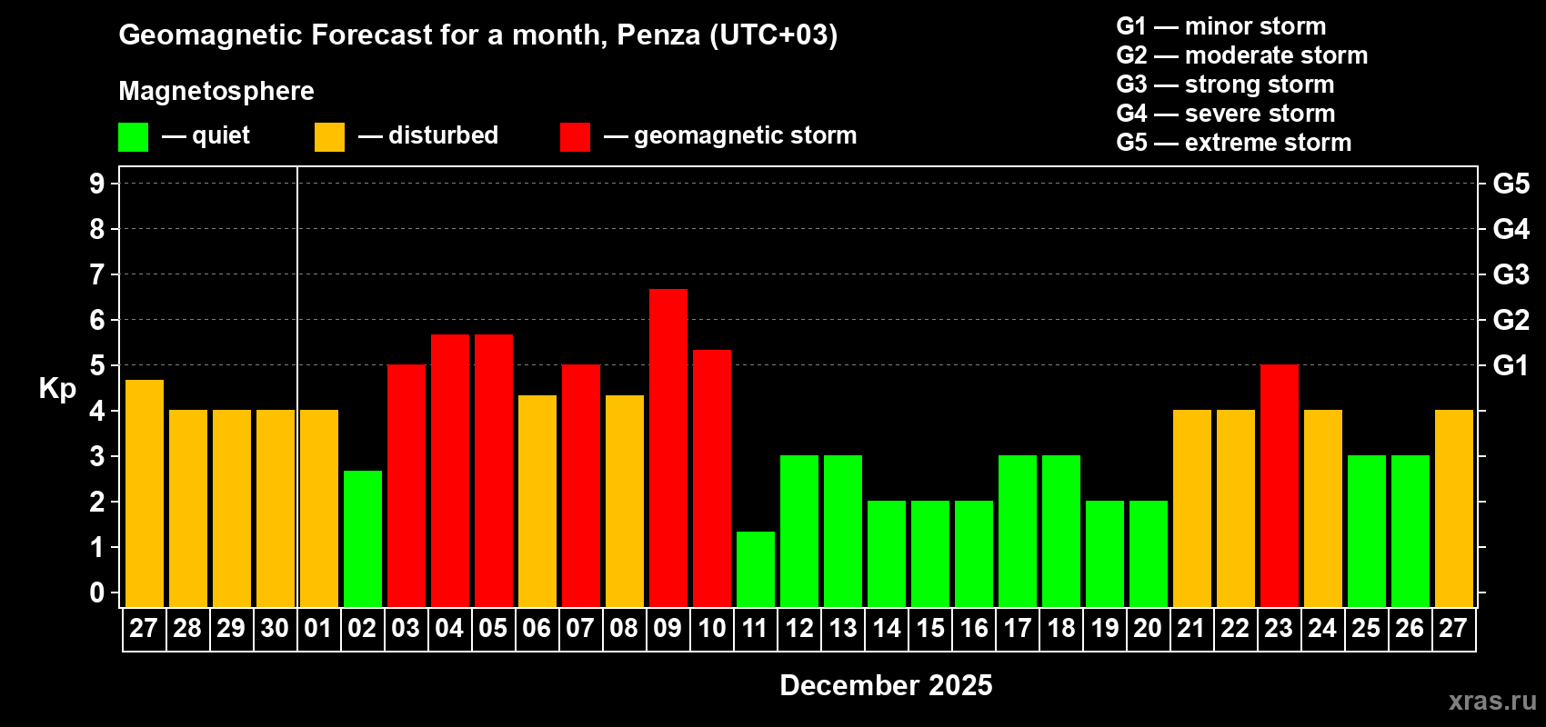 Geomagnetic storm forecast in Penza for Nov 27, 2025