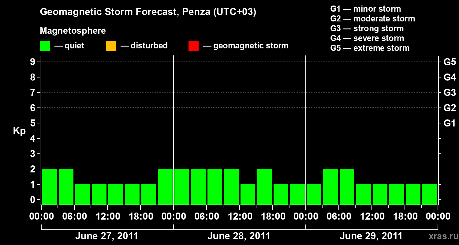 Geomagnetic storm forecast in Penza for Jun 27, 2011