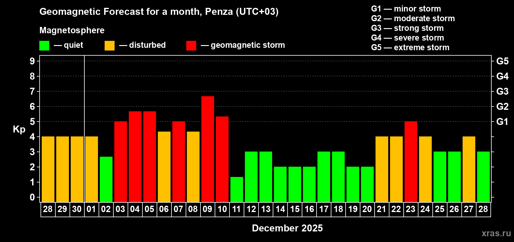 Geomagnetic storm forecast in Penza for Nov 28, 2025