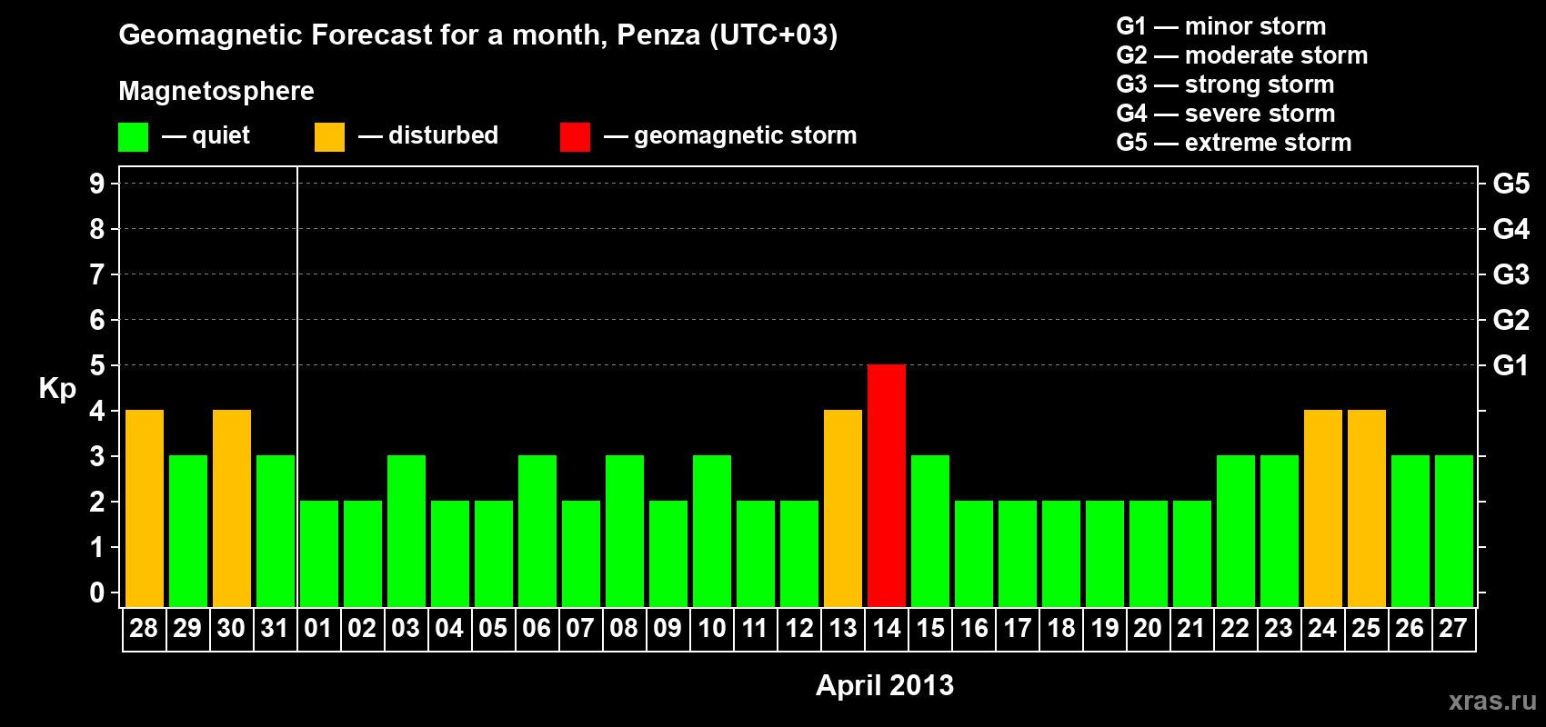 Geomagnetic activity forecast in Penza — Mar 28, 2013