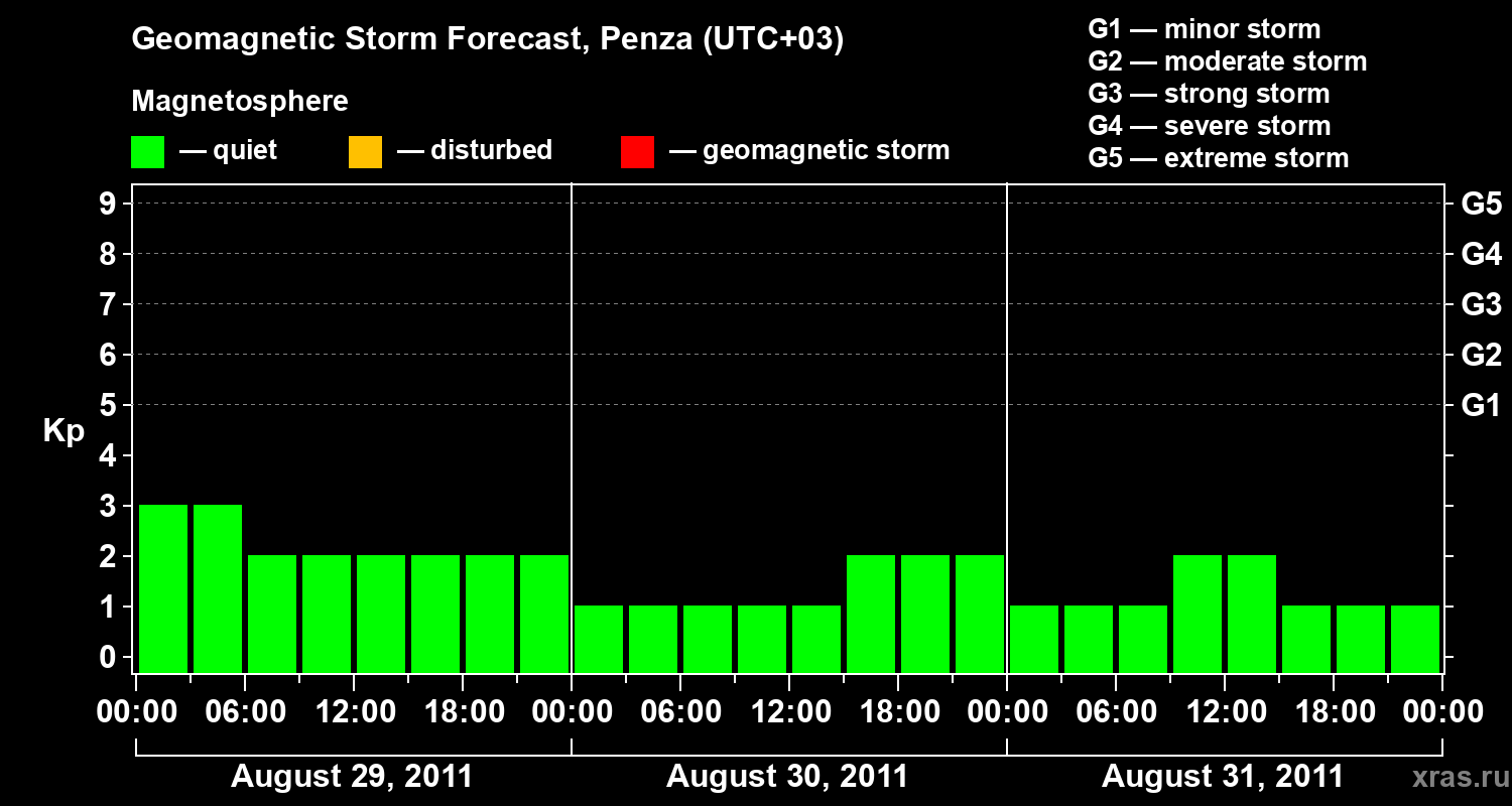 Geomagnetic storm forecast in Penza for Aug 29, 2011