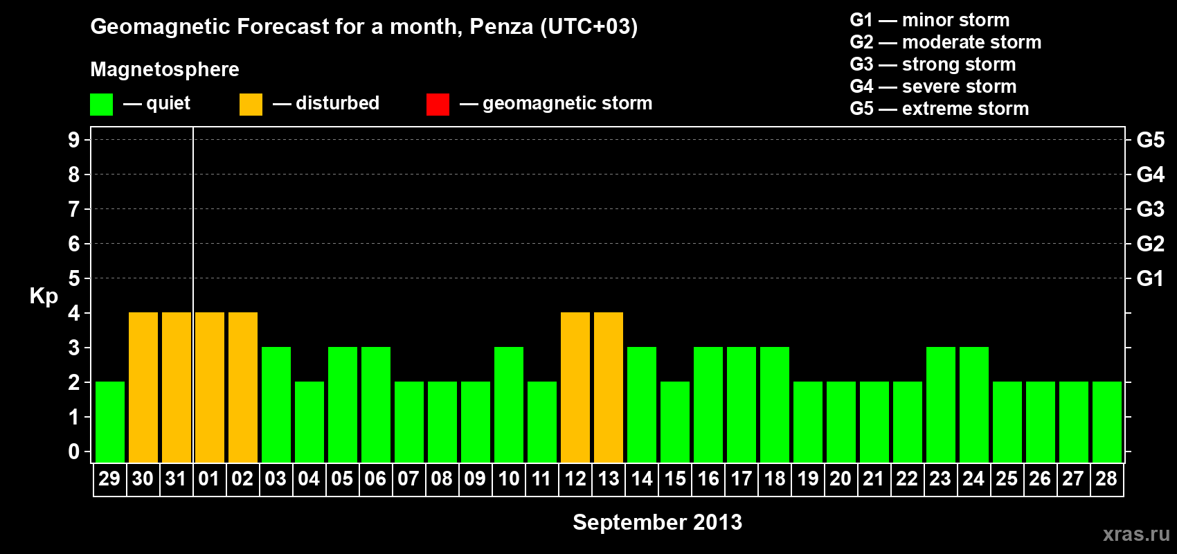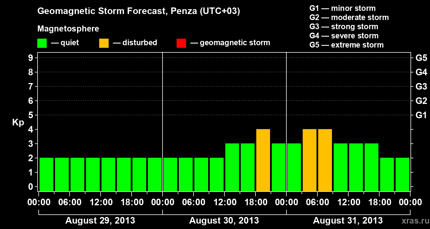 Geomagnetic storm forecast in Penza for Aug 29, 2013
