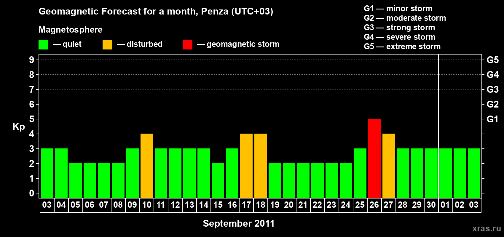 Geomagnetic storm forecast in Penza for Sep 03, 2011