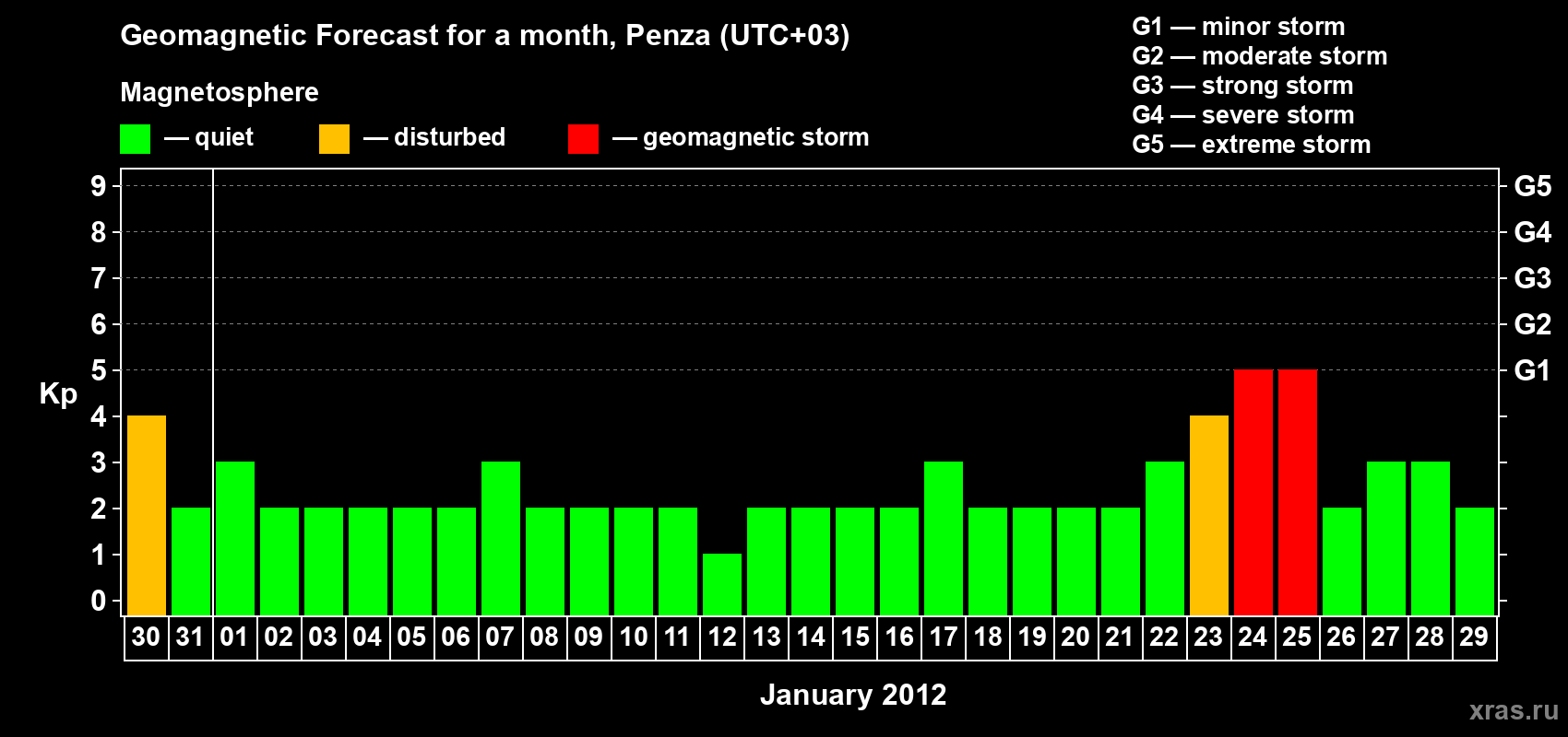 Geomagnetic storm forecast in Penza for Dec 30, 2011